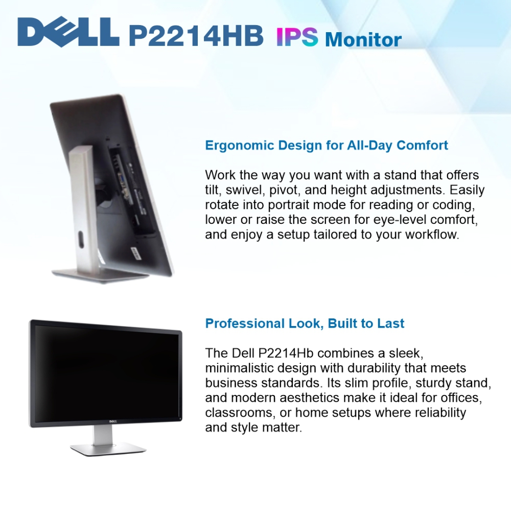 Pre-owned DELL P2214HB IPS PANEL LED Monitor with Pivot Function
