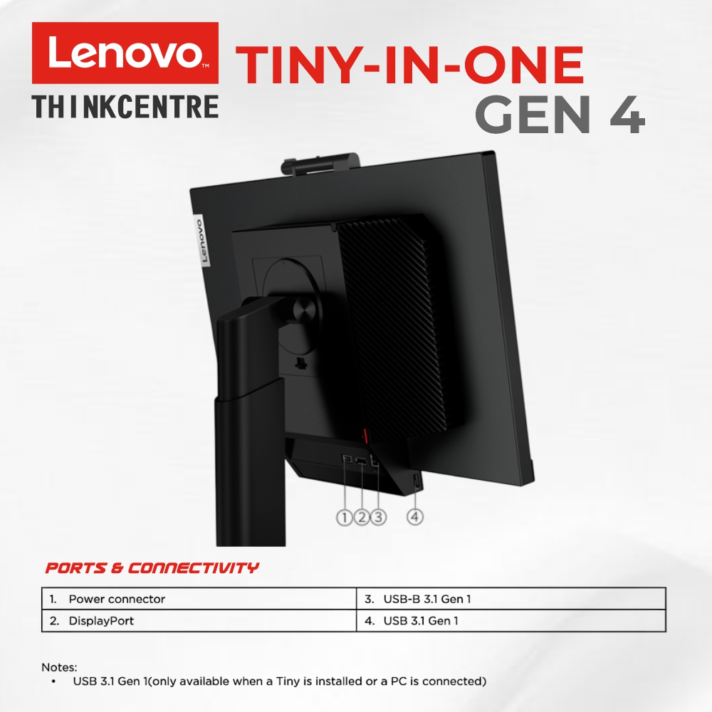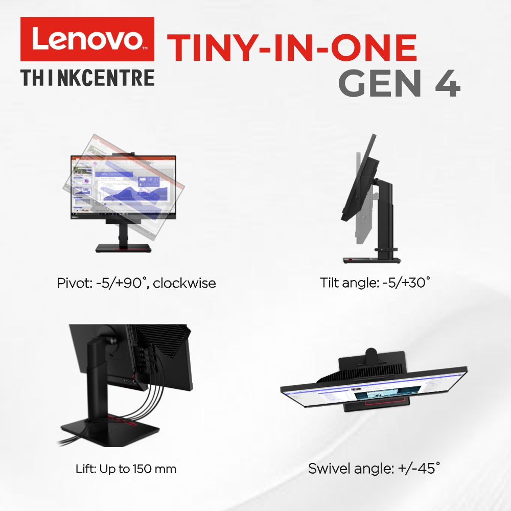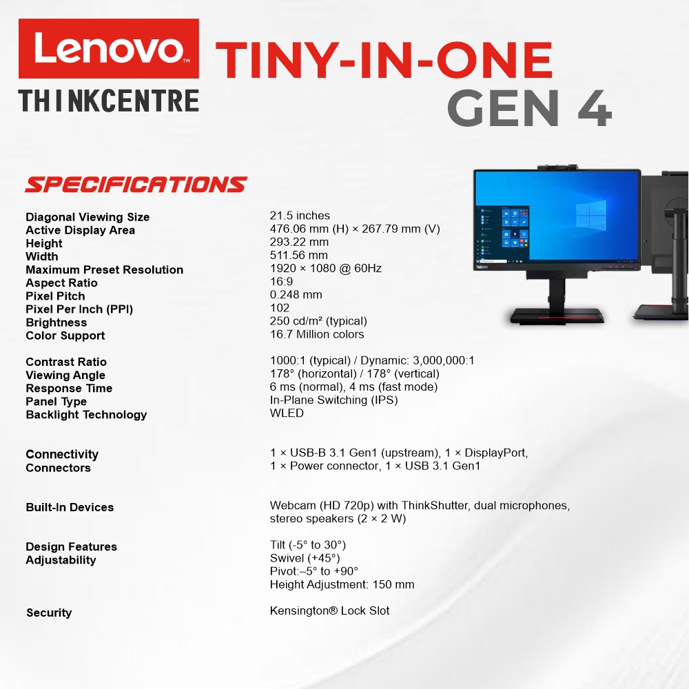 🔘 LENOVO ThinkCentre TINY-IN-ONE Gen 4 21.5 IPS WLED Monitor with Built-In Webcam (HD 720p) with ThinkShutter, dual microphones, stereo speakers (2x2W)