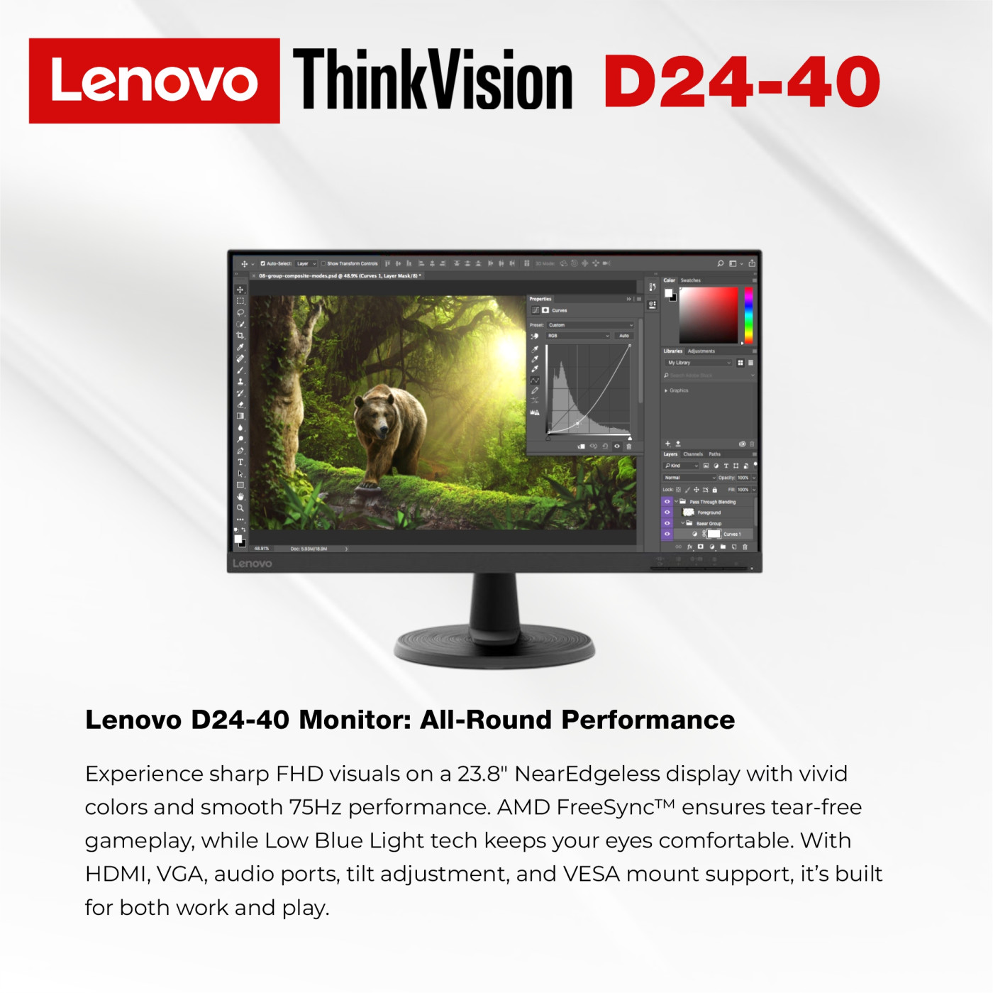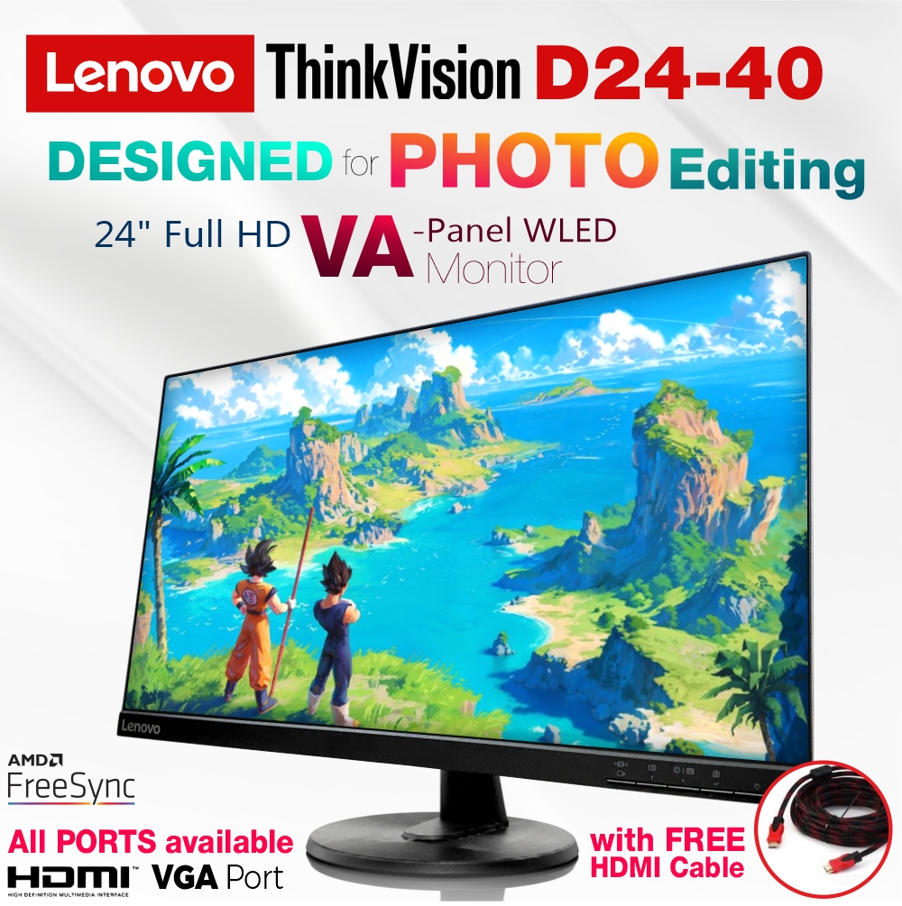 🔘 Pre-owned LENOVO 24-inch D24-40 LED FRAMELESS MONITOR HDMI / VGA