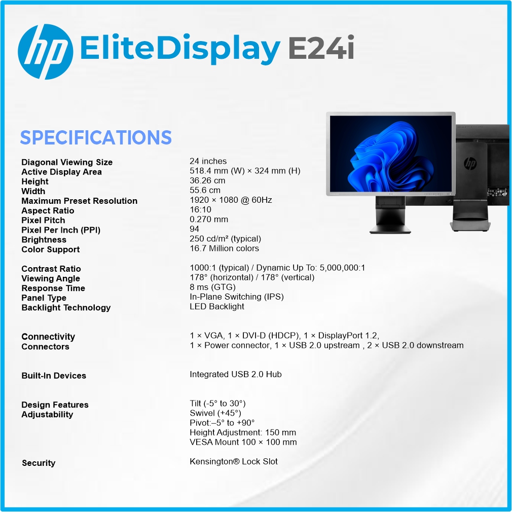 🔘 Pre-owned HP ELITEDISPLAY 24-inch E24i IPS DISPLAY MONITOR