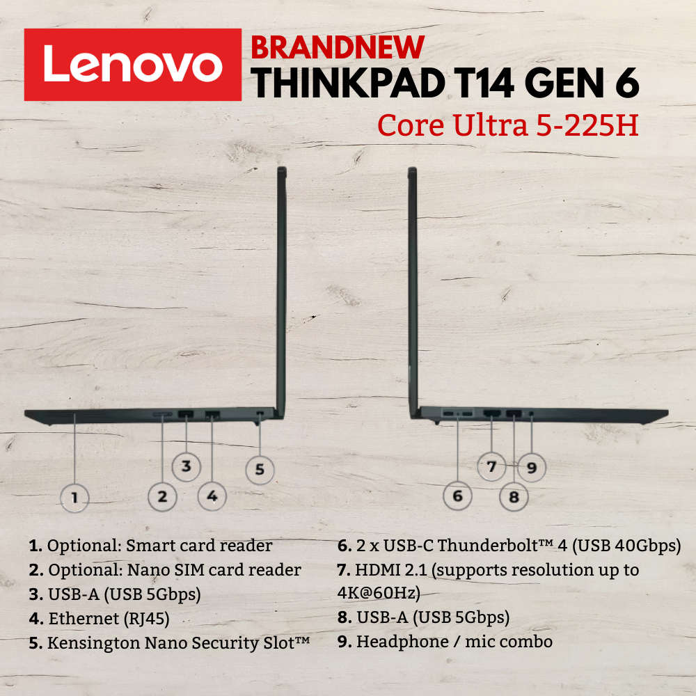 BN Lenovo Thinkpad T14 Gen 6 Core ultra 5-225H | 16GB DDR5 RAM | 512GB M.2 NVMe SSD - Windows 11 Professional
