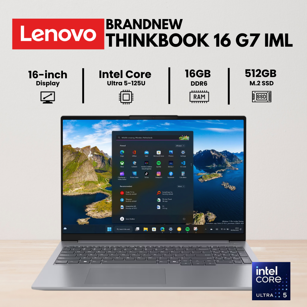 🔹 Brief Introduction Introducing the Brandnew Lenovo ThinkBook 16 G7 IML (Core Ultra 5 125U) — a modern business laptop designed for productivity, performance, and versatility. With its large 16-inch workspace, powerful Intel® Core™ Ultra processor, and