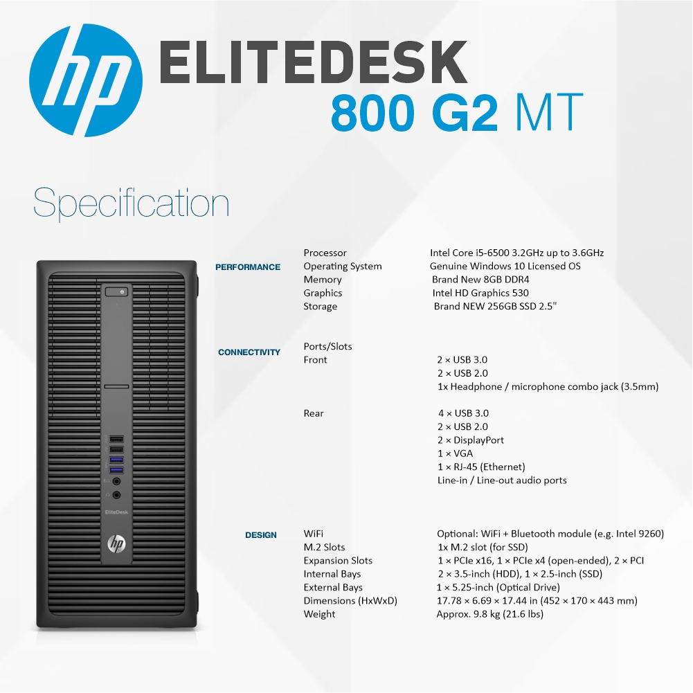 Refurbished HP ELITEDESK 800 G2 MT Core i5 6th Gen. Desktop with Installed Windows 10 Pro/ Home OS
