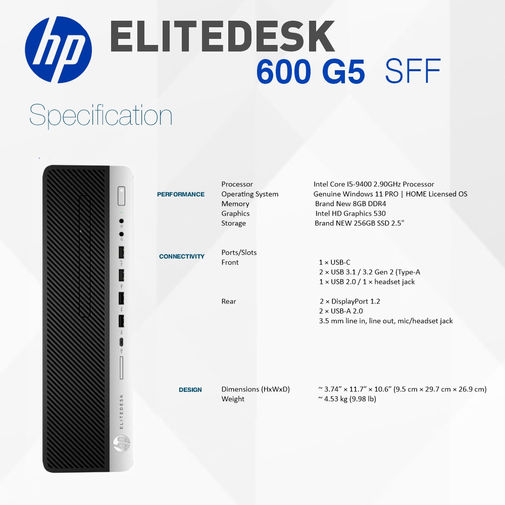Refurbished 9th Gen Core i5 HP ELITEDESK 600 G5 SFF Desktop with installed Genuine Windows 11 Pro/Home OS