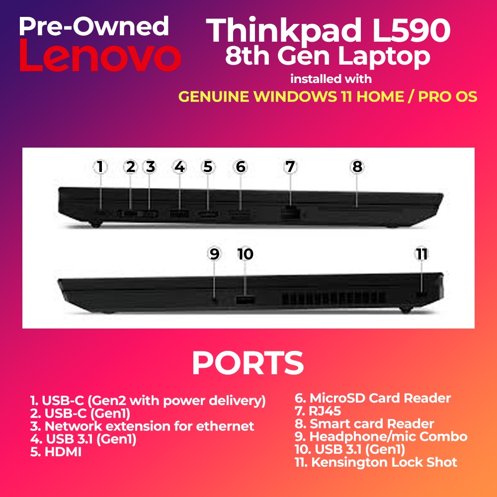 Get reliable everyday performance with this pre-owned Lenovo ThinkPad L590 (8th Gen) laptop. Designed for productivity and durability, it’s perfect for office work, online classes, and business use—offering great value at an affordable price.