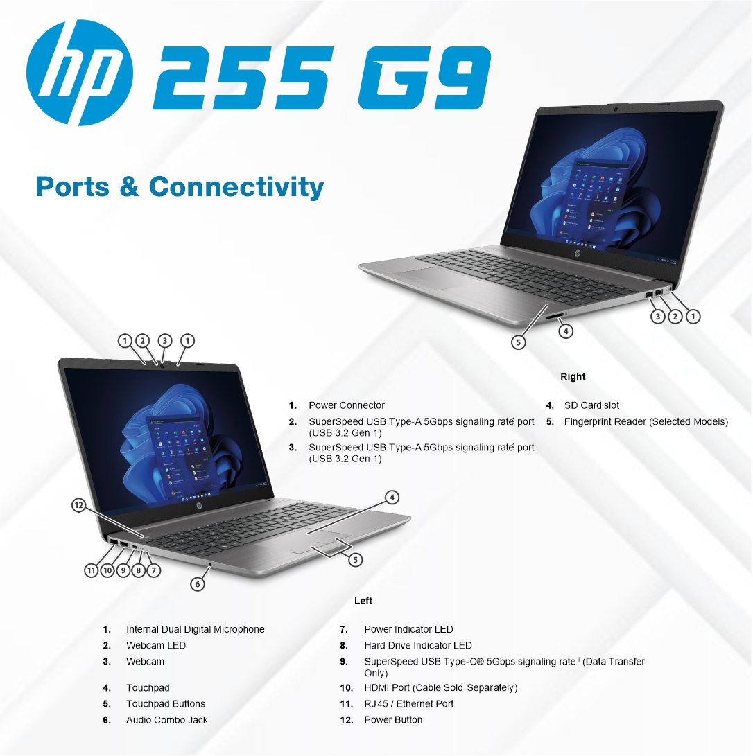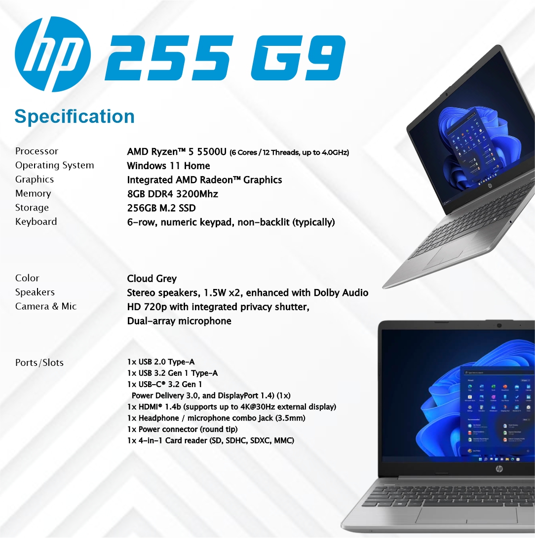 BrandNew HP 255 G9 RYZEN 255 G9 Business Laptop / RYZEN 5-5625U 2.3GHZ / 8GB (4GB x 2) DDR4 / 256GB M.2 SSD / 15.0” / Free DOS 3.0 OS