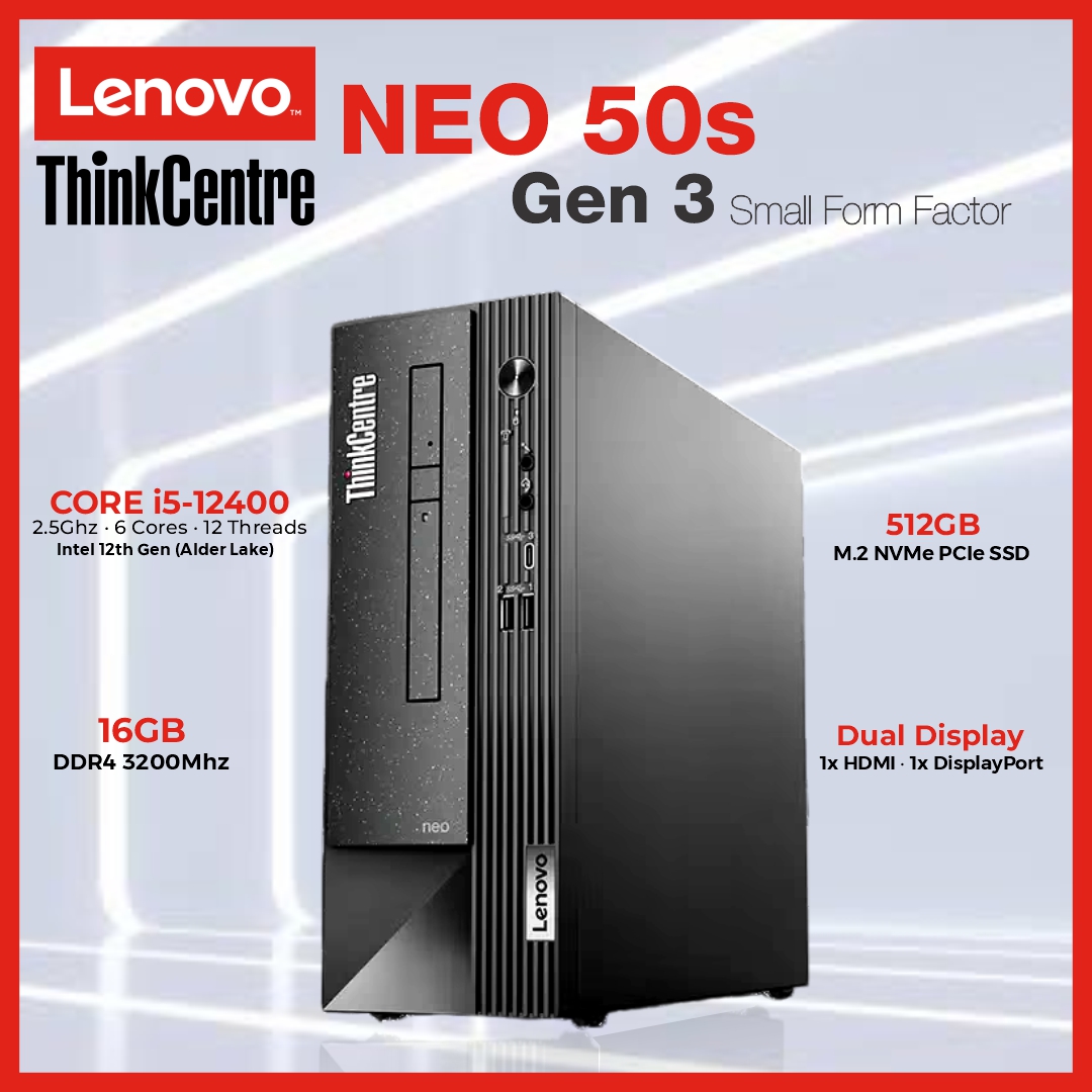 Lenovo Thincentre Neo 50s Gen 3 12th Gen Intel Core i5-12400 / 16GB DDR4 3200Mhz Memory / 512GB M.2 NVMe PCIe SSD / Integrated Intel UHD Graphics / with WINDOWS 10 PRO Operating System