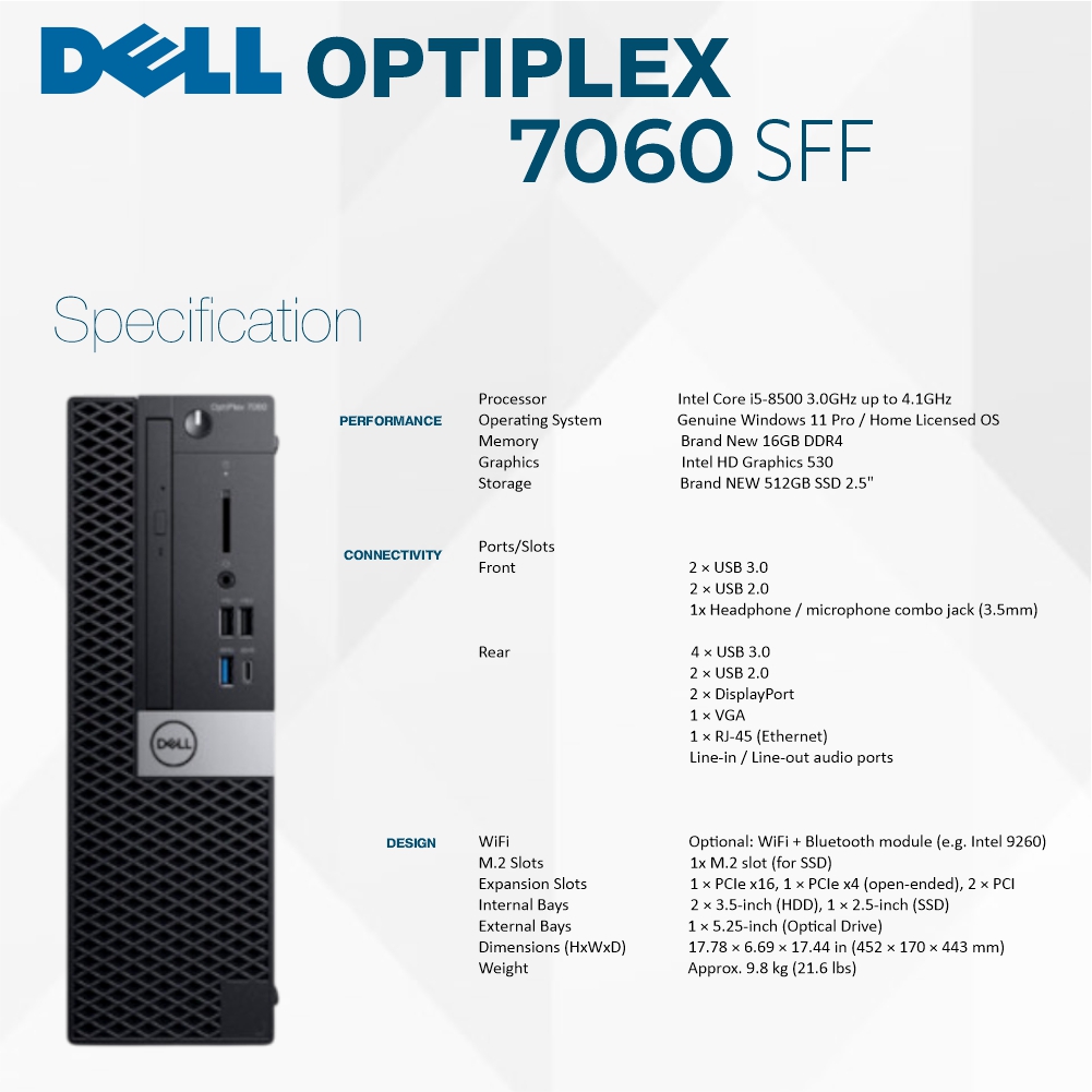 Refurbished DELL OPTIPLEX 7060 Core i5 8th Gen. Desktop with Installed Windows 11 Pro/ Home MAR OS