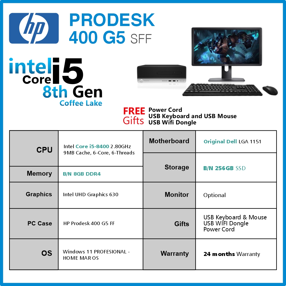 Refurbished 8th Gen Core i5-8400 HP PRODESK 400 G5 SFF Desktop with installed Genuine Windows 11 Pro/Home OS