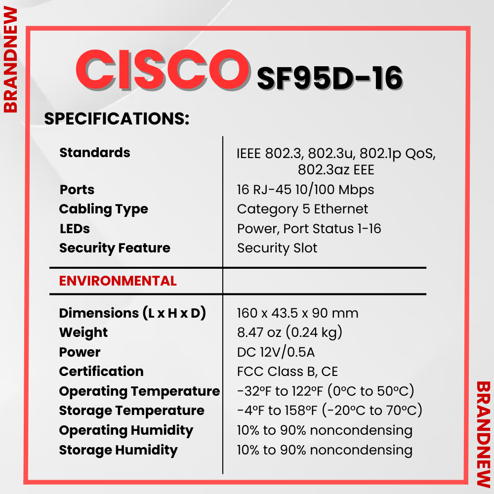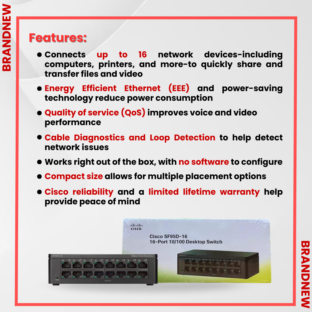 BRANDNEW CISCO SF95D-16 16-Port 10/100 Desktop Switch