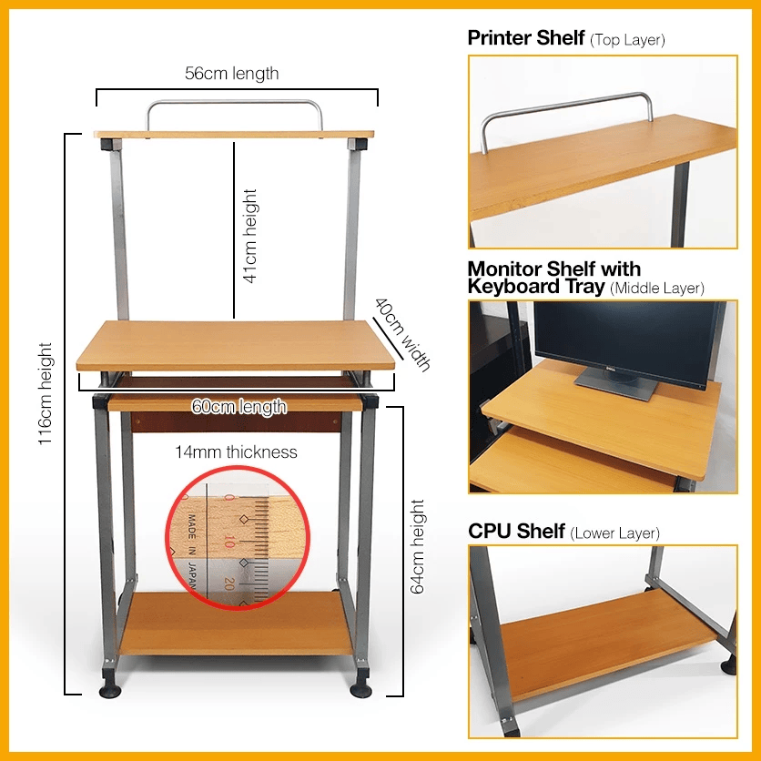 🔘 Computer Table BLACK & BEECH Color / with Keyboard Tray / PC Desk / with Manual
