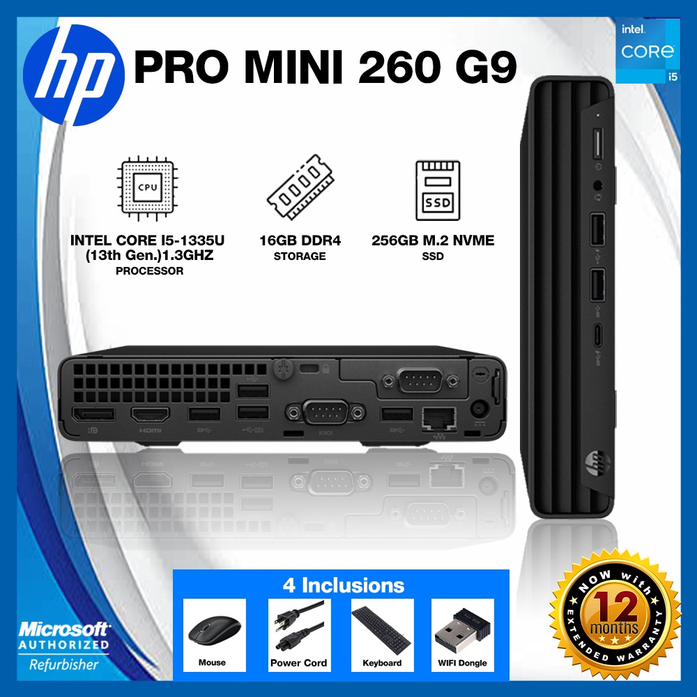 Refurbished 13th Gen Core i5 HP PRODESK MINIPC 260 G9 Desktop with Installed Genuine Windows 11 Home/Professional